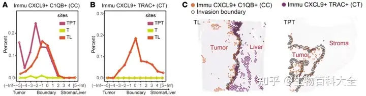 为破解这一临床科研瓶颈,该研究团队对8例伴有肝脏侵犯的胆囊癌患者进行多区域取样,结合单细胞RNA测序、10xVisium以及10xVisium HD等空间转录组技术,全面刻画从肿瘤核心、肿瘤-肝脏侵犯交界区直至正常肝组织的细胞构成空间梯度。团队还自主开发空间位置分析工具POSST,实现对微环境中各细胞分布特征的精准定量描绘,清晰揭示肿瘤-肝脏边界处的细胞动态变化规律。
