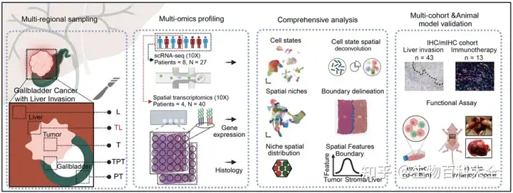 胆囊癌是胆道系统中侵袭性最强的恶性肿瘤之一,因解剖位置紧邻肝脏,极易发生直接肝侵犯,进而导致根治性手术范围扩大、手术难度显著提升、患者整体预后不良。肿瘤由胆囊原位侵犯至肝脏后,其生物学行为发生质的改变,临床治疗策略也需随之调整。尽管肝侵犯在胆囊癌中极为常见,但肿瘤—肝脏交界处微环境的细胞组成、空间架构及免疫调控机制,长期以来尚未得到系统阐明,成为制约胆囊癌诊疗突破的关键难题。